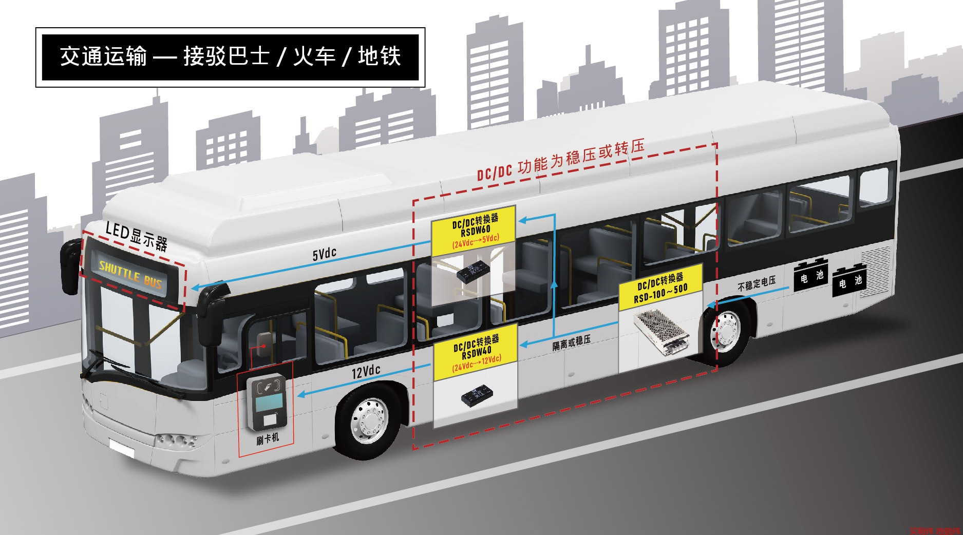明纬继推出8W/10W/20W灌胶铁道交通运输专用DC/DC模块后,紧接着新推出了40W/60W更高瓦数的单组输出RSDW40/60及双组输出的RDDW40/60系列,可充分满足交通车载系统更高瓦数插板式DC/DC转换器之需求。