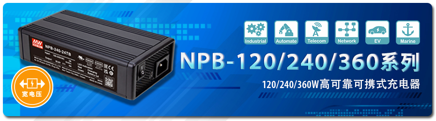 台湾明纬电源新型号NPB-120/240/360系列:120/240/360W高可靠可携式宽压充电器